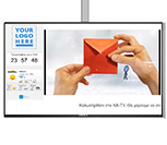 Στο μεγαλύτερο μέρος της Οθόνης μπορούν να εμφανίζονται διαφημιστικά βίντεο και φωτογραφίες, καιρός , όπως επίσης RSS ή σελίδες του Site του πελάτη.αυτό.